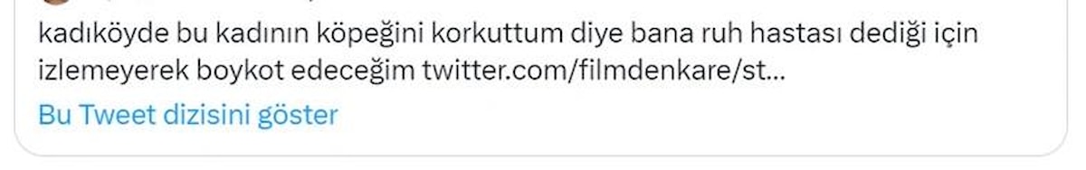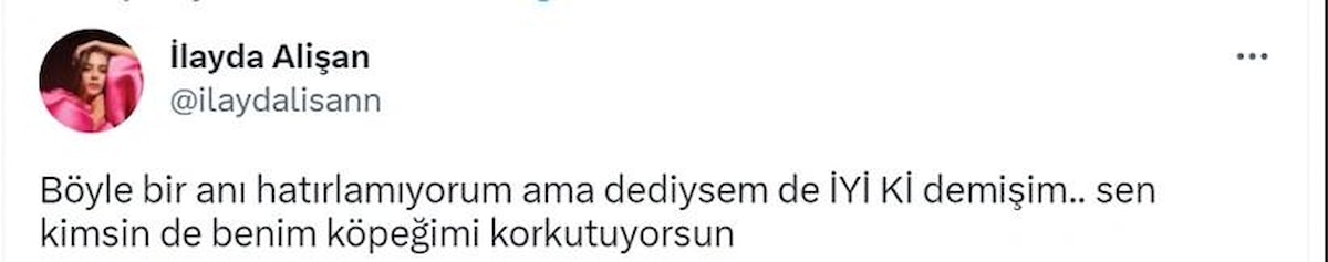 Güzel oyuncu, "Böyle bir anı hatırlamıyorum ama dediysem de İYİ Kİ demişim. Sen kimsin de benim köpeğimi korkutuyorsun?” diyerek tweet’i atana tepki gösterdi.