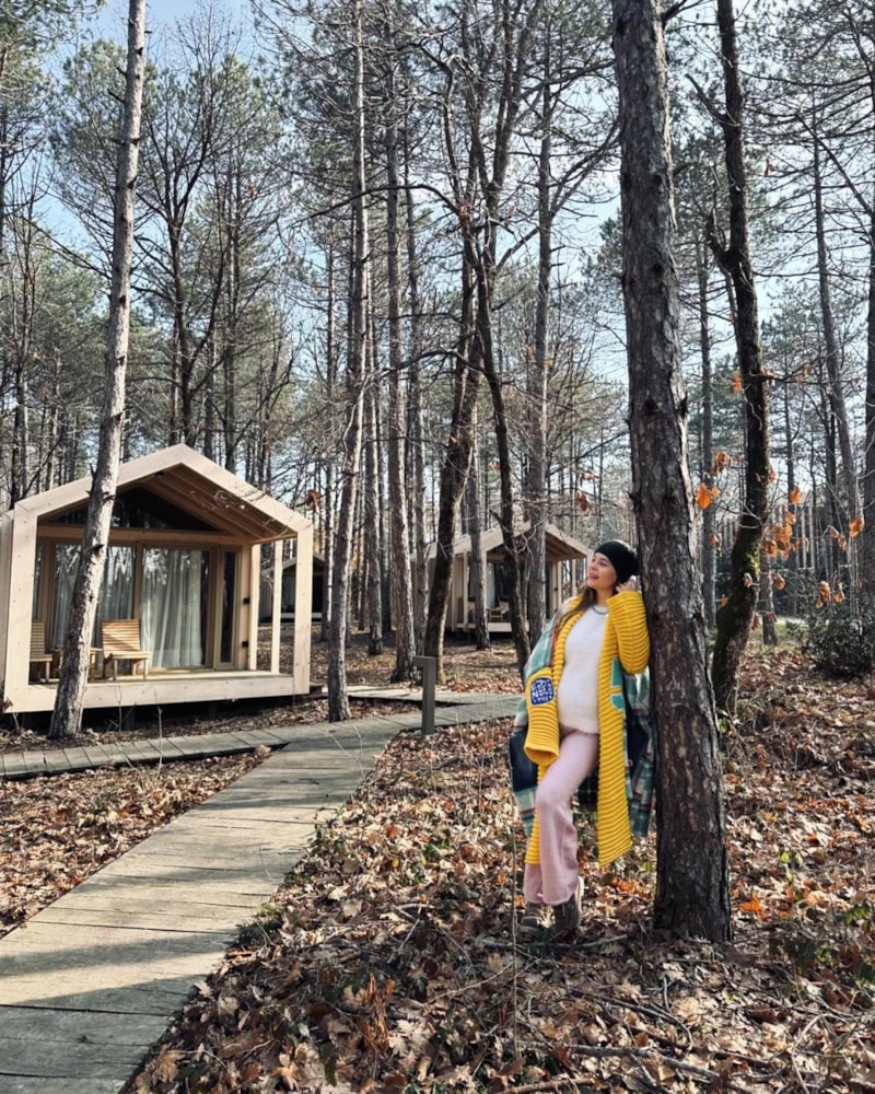 Atiksoy, hafta sonunu eşiyle birlikte Kırklareli'ndeki Longoz Ormanları’nda geçirdi. Ünlü isim, büyüyen karnıyla objektif karşısına geçerek poz verdi.