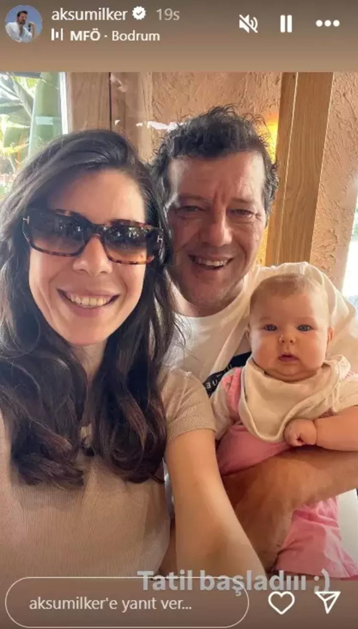 Aksum, sosyal medya hesabından eşi ve kızıyla verdiği bir pozu yayınlayarak "Tatil başlasın" notunu yazdı.