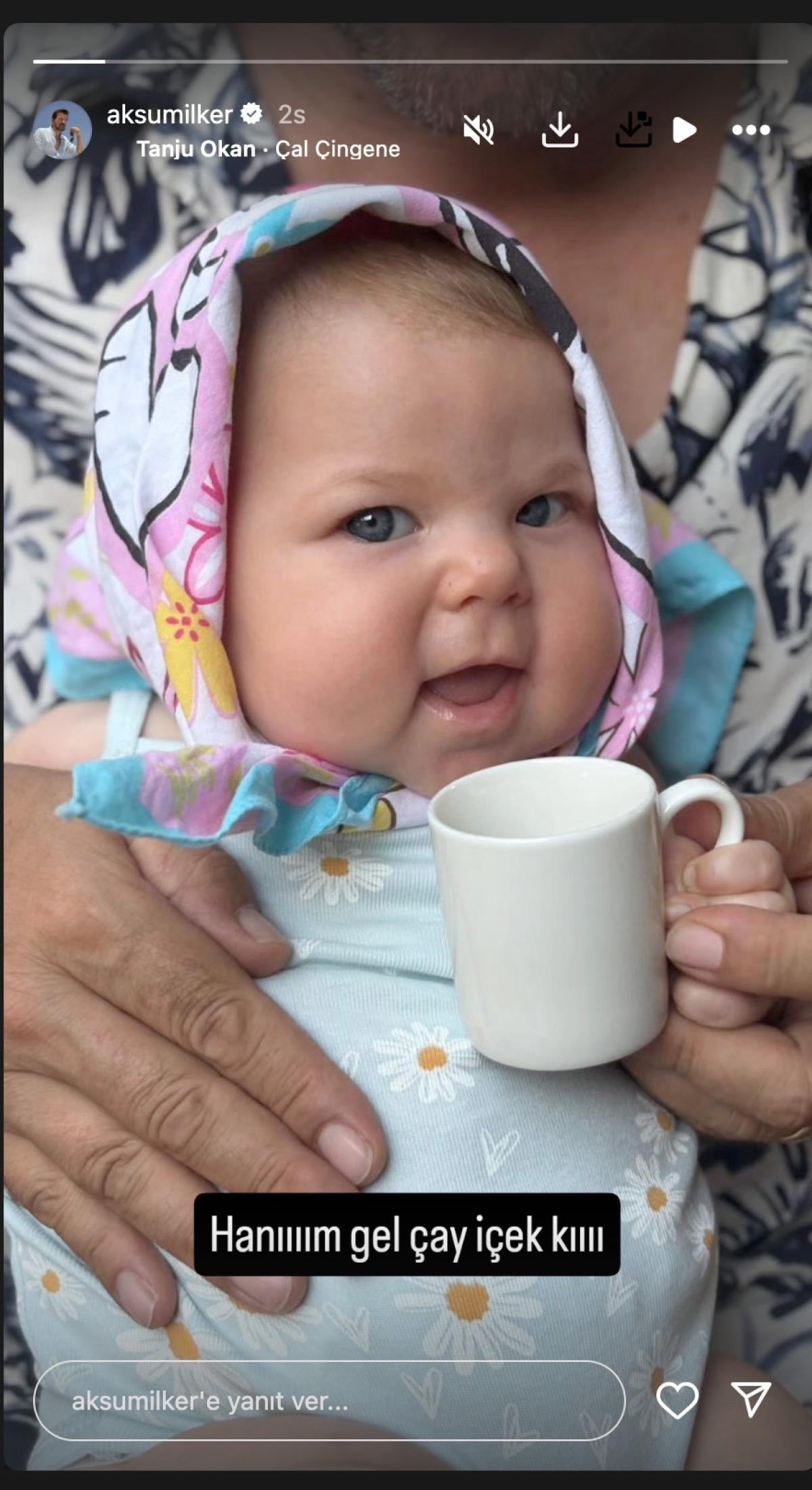 Aksum, kızıyla yeni bir paylaşım daha yaptı. Minik Lila ile çay keyfi yapan Aksum, paylaşımına esprili bir şekilde "Hanım gel çay içek kıı" notunu düştü.