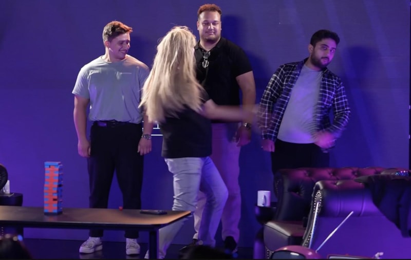 Özel hayatına dair açıklamalarda bulunan Ayrık, Jenga oyununda Hadise'nin konserinde yaptığı çok konuşulan tokat dansını yaptı.