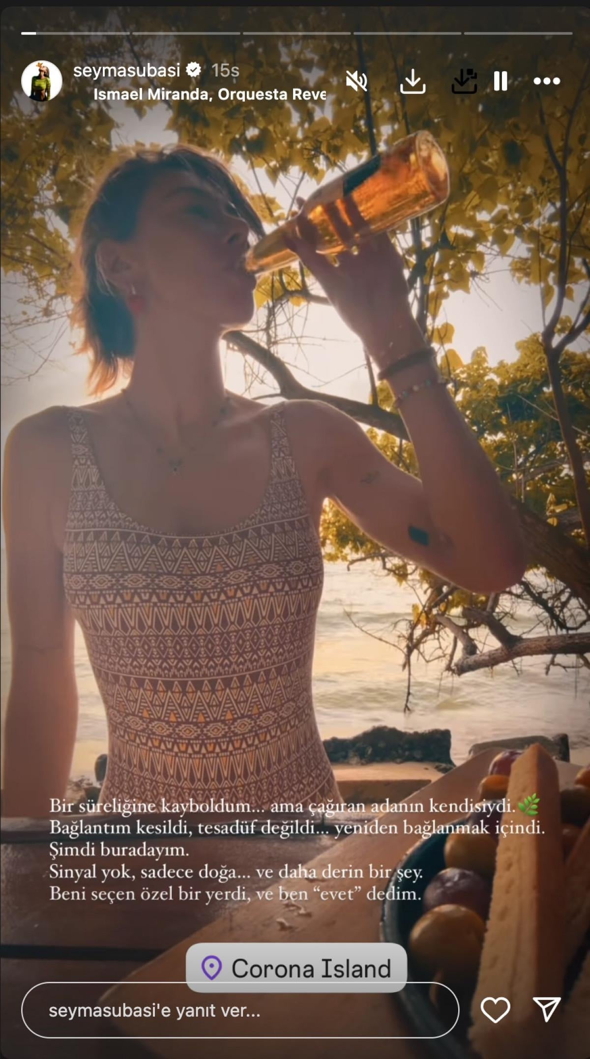 Uzun bir süre sonra geri geldiğini duyuran Subaşı paylaşımına, "Bir süreliğine kayboldum, ama çağıran adanın kendisiydi, bağlantım kesildi tesadüf değildi, yeniden bağlanmak içindi. Şimdi buradayım sinyal yok, sadece doğa ve daha derin bir şey. Beni seçen özel bir yerdi ve ben evet dedim." notunu düştü.