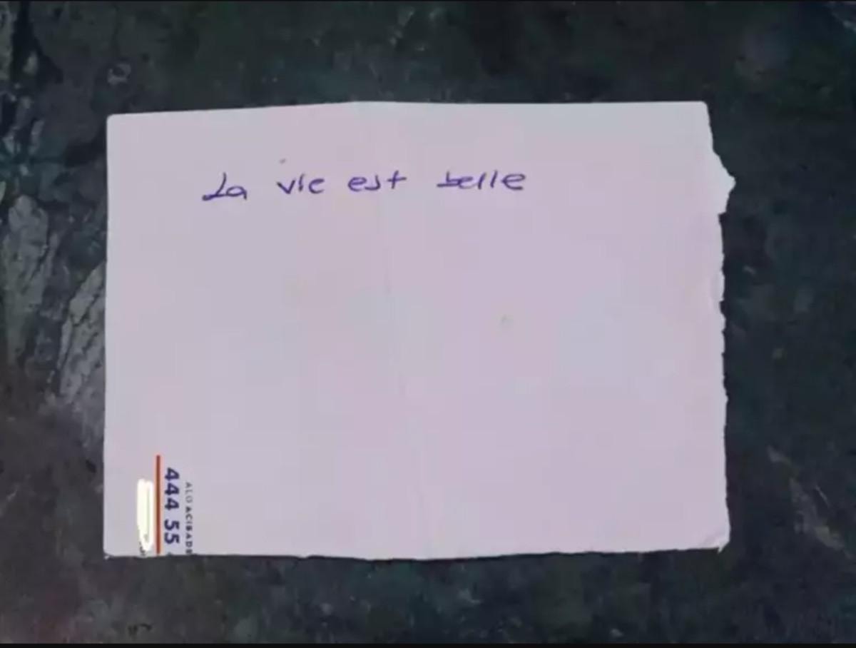 "Acaba annem şu an benimle mi diye düşünürken, içimden çantasına bakmak geldi. Cüzdanından bu not çıktı "La vie est belle" yani "hayat güzel"
