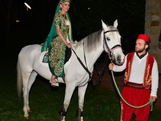 İpek Tanrıyar, önceki akşam kına gecesi düzenledi. Tanrıyar, kınanın yapıldığı yere beyaz at üzerinde gelince. konuklarını şaşırttı.