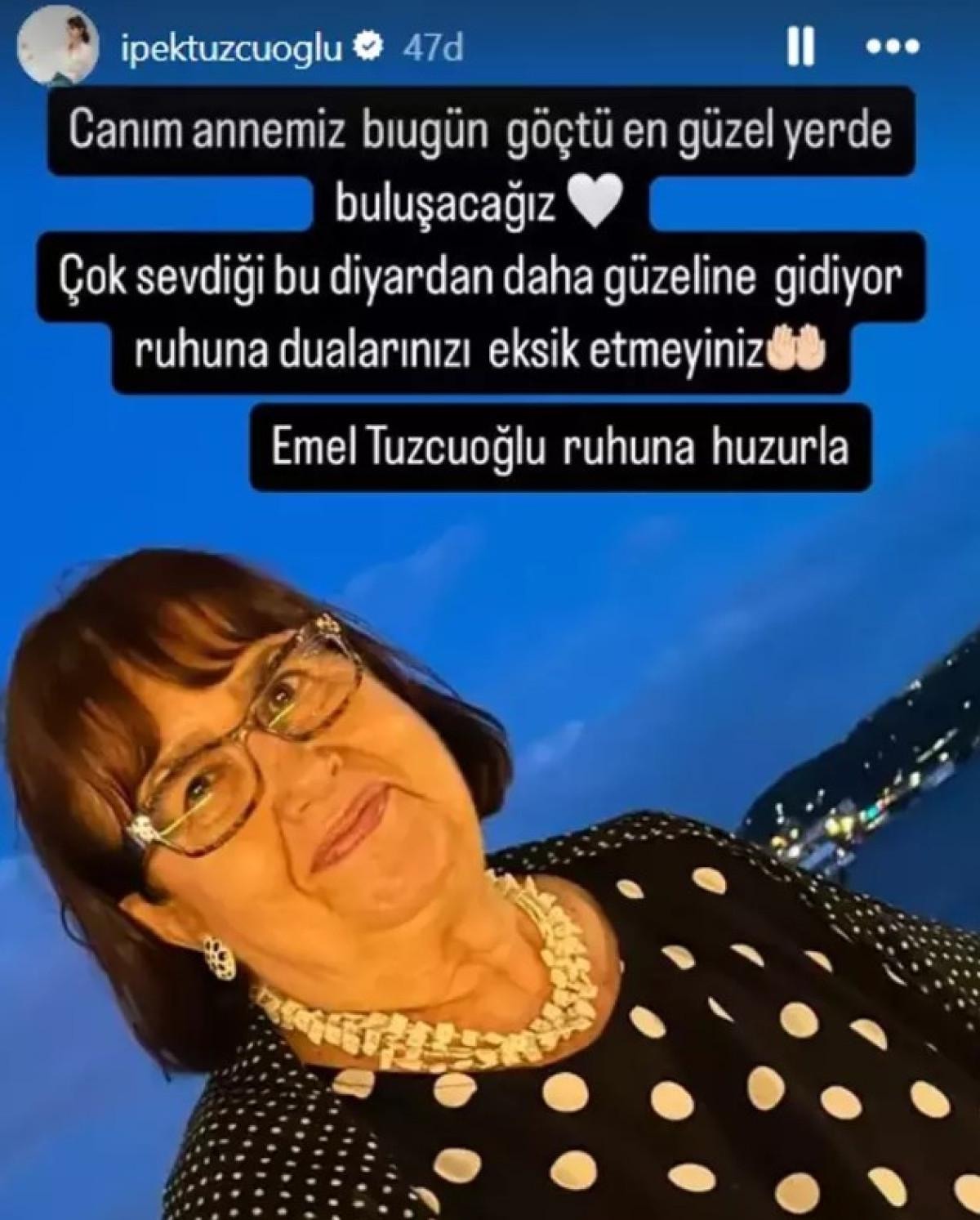 53 yaşındaki oyuncu Instagram hesabından acı haberi paylaştı. Annesini kaybeden İpek Tuzcuoğlu şunları yazdı: