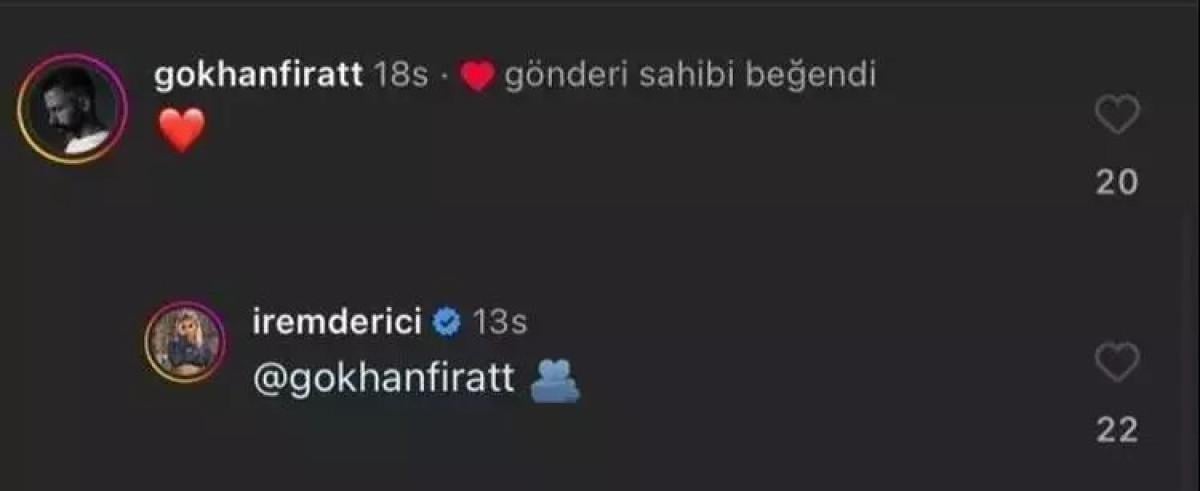 Yönetmen ve fotoğrafçı Gökhan Fırat, Derici'nin bu gönderisine kalp emojisiyle yorum yaptı. Derici de Fırat'a sarılma emojisiyle karşılık verdi.