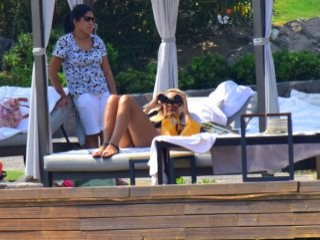 Habertürk gazetesinden Hakan Yağcı'nın haberine göre; önceki gün otelde güneşlenirken görüntülenen Reçber, kendisini görüntüleyen gazetecileri fark edince güvenlik görevlisinin dürbününü alarak gazetecileri izledi.