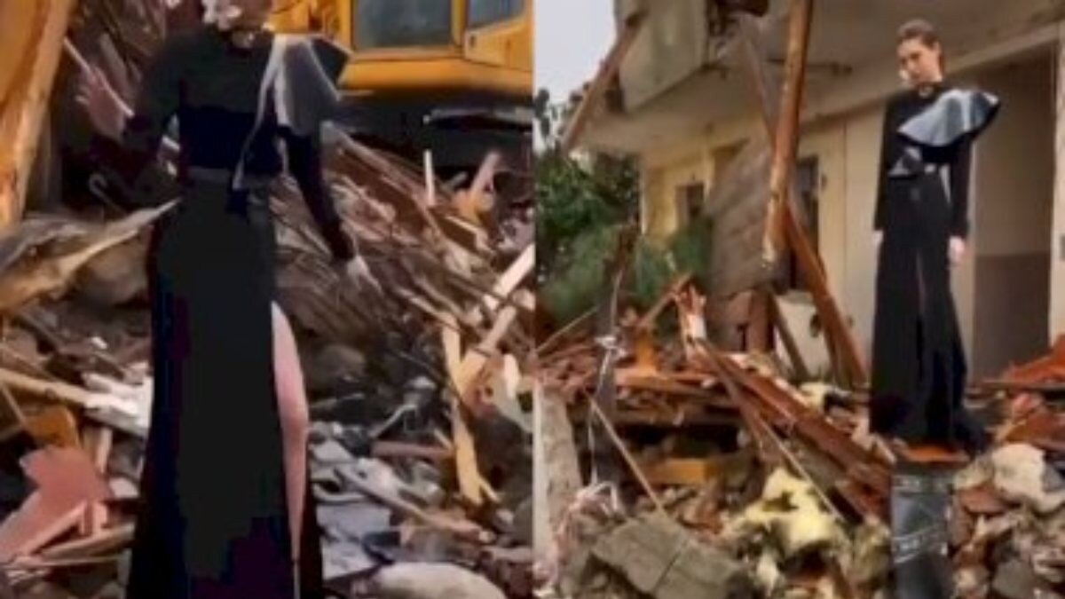 Deprem enkazı üzerinde yapılan çekimlerde Esen'in adeta podyumdaymışcasına poz vermesi, eleştirilere neden oldu.