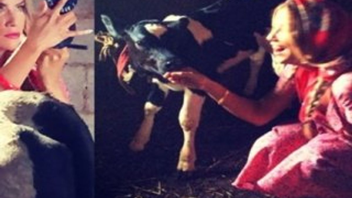 Ünlü tasarımcı ve stil ikonu Ivana Sert, İlker Ayrık'ın yönettiği 'Yapışık Kardeşler' filminin çekimlerine devam ediyor. Rol gereği köylü kıyafetleri giyerek ahıra giren Sert, danayla fotoğraf çektirdi.