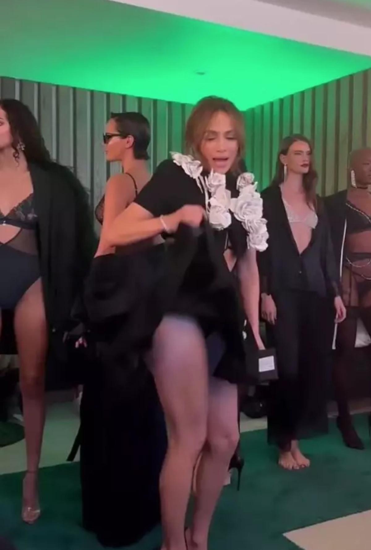 54 yaşındaki Lopez, pozların ardından markanın davetine katıldı. 54 yaşındaki pop yıldızı, şakacı bir şekilde iç çamaşırını izleyicilere göstererek defileyi kapatmasıyla olay oldu.