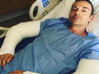 “Merdivenlerde dengemi kaybedip kaydım. Trabzana tutunmak isterken ters hareket ettim. İki kolumun da tendonları koptu. Ameliyat geçirdim. Şimdi (dün) taburcu oluyorum. Uzun zaman kollarımı kullanamayacağım.