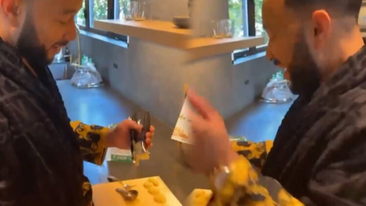 Çiftin her ikisinin de Instagram hesaplarında paylaştığı videoda Teigen, eşine "John şu anda R&B dalında ödül kazandın, nasıl kutlayacaksın?" diye soruyor. Legend da ona "Sarımsakları ince ince doğrayarak." diye yanıt veriyor.