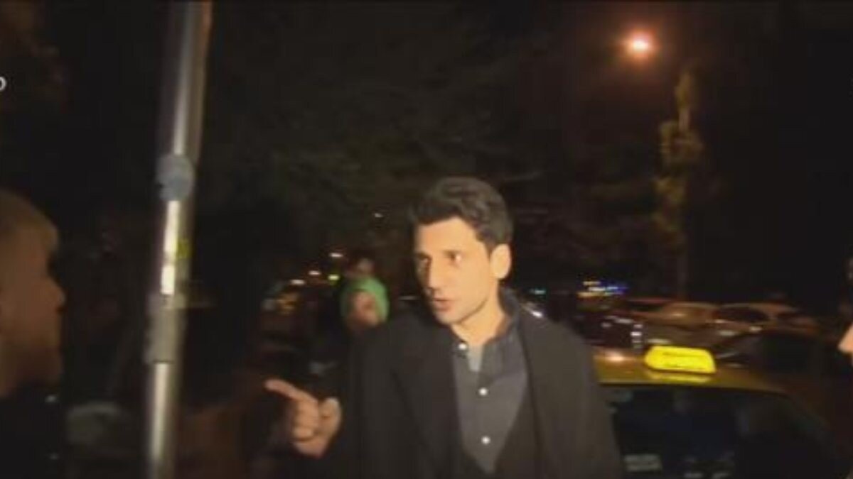 Yemekte alkol tüketen oyuncu, mekan çıkışı kendisini bekleyen basın mensuplarını görünce gerildi.
