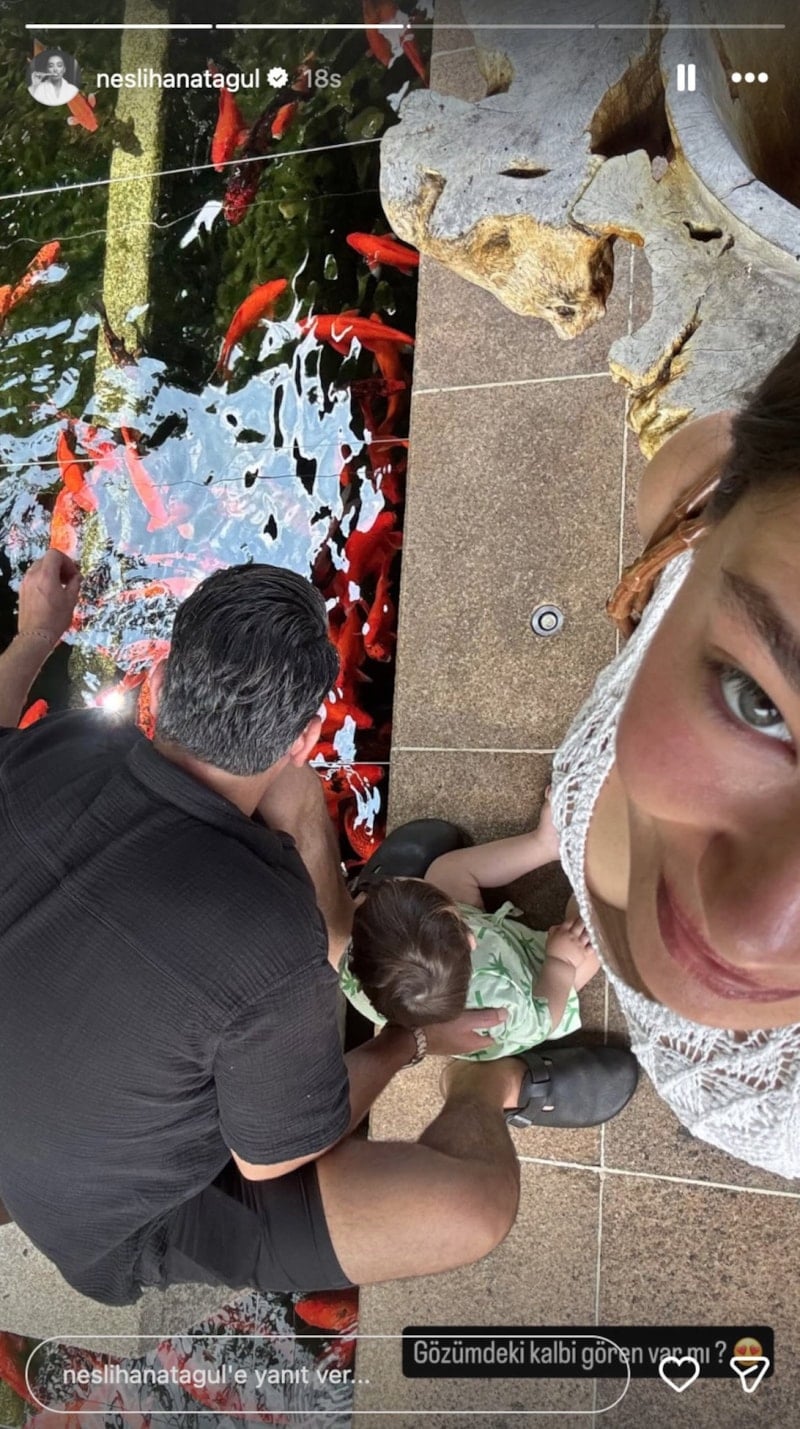 Neslihan Atagül ailesiyle yaptığı romantik, hem de eğlenceli paylaşımının altına, "Gözümdeki kalbi gören var mı?" ifadelerini kullandı.