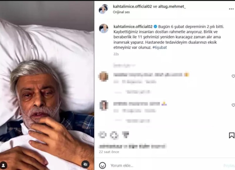 6 Şubat depremlerinde 25'ten fazla akrabası vefat eden Adıyamanlı şarkıcı Kahtalı Mıçe, bağırsaklarındaki kitleler nedeniyle bir süredir tedavi görüyor. Tedavisine hastanede devam eden müzisyen, 6 Şubat depremlerinin ikinci yıl dönümünde hasta yatağından açıklama yaptı.