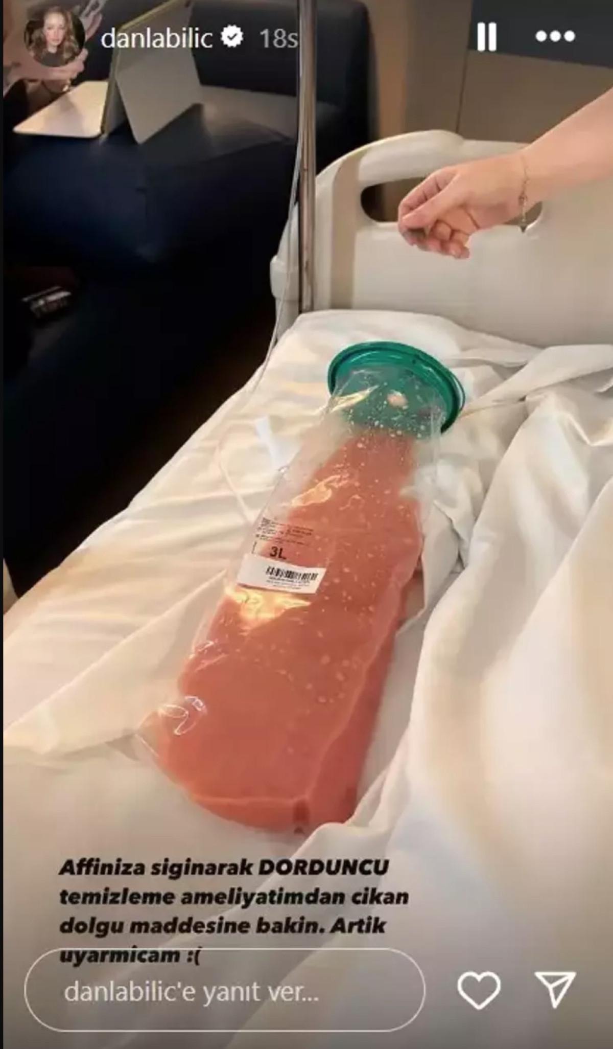 Bilic, vücudundan aldırdığı dolguyu Instagram hesabından yayınlayarak "Affınıza sığınarak dördüncü temizleme ameliyatından çıkan dolgu maddesine bakın. Artık uyarmayacağım" dedi.