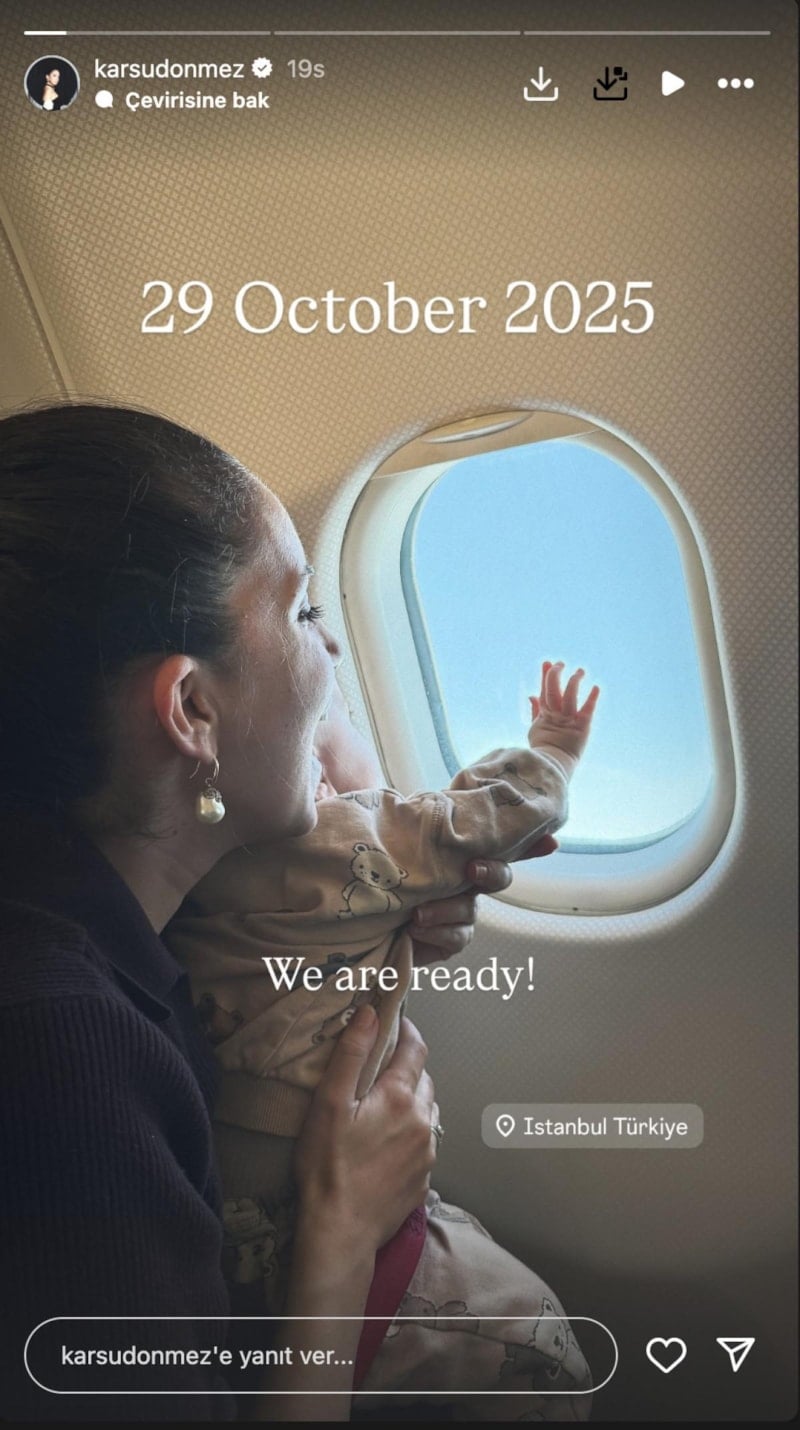 Hollanda'da yaşayan şarkıcı Dönmez, Türkiye'de iki konser vermeye hazırlanıyor. Türk sevenleriyle buluşmak için sabırsızlanan Karsu, bebeğiyle uçak yolculuğu yaptı. Ünlü isim oğlu Blues ile uçakta verdiği pozu da sosyal medya hesabından paylaştı.
