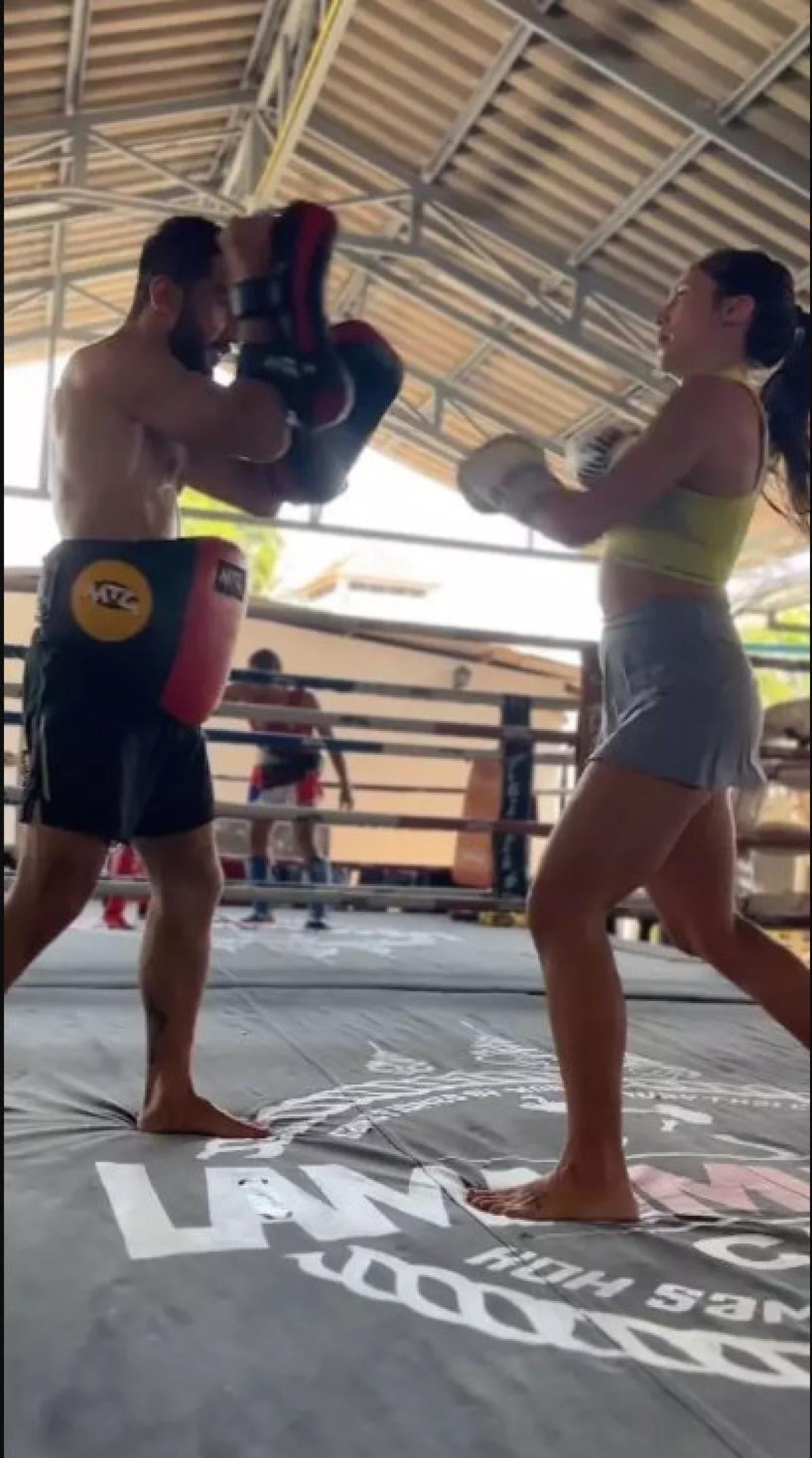Kaya Çilingiroğlu, Lamai Muay Tai kampında kızının dövüş eğitimi aldığı anları da sosyal medyada paylaştı.