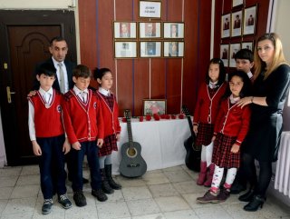 Öğrenciler, düzenlenen etkinlikte, okulda eğitim gören ünlülerin bulunduğu şeref köşesindeki Kayahan'ın fotoğrafının yanına gitar ve karanfil bıraktı.