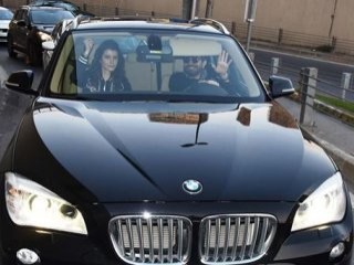 Yeni cipiyle objektiflere takılan Doğulu, bir mekanda akşam yemeği yedikten sonra yeni aldıkları BMW X1 model araçlarıyla trafikte ilerledi. İkilinin neşeli halleri dikkat çekti.