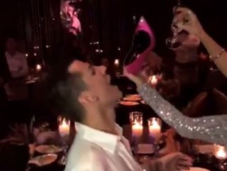 Partiye damga vuran bir başka olayda Durmaz'ın ünlü modacı Gülşah Saraçoğlu'nun topuklu ayakkabısına döktüğü içkiyi içmesi oldu.