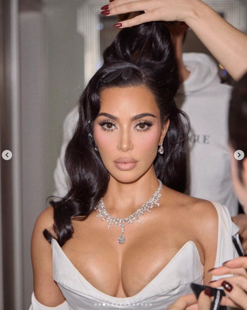 Kombinini 30 karat değerinde elmas takısıyla tamamlayan Kardashian, kolye ve küpeleriyle de baş döndürdü.