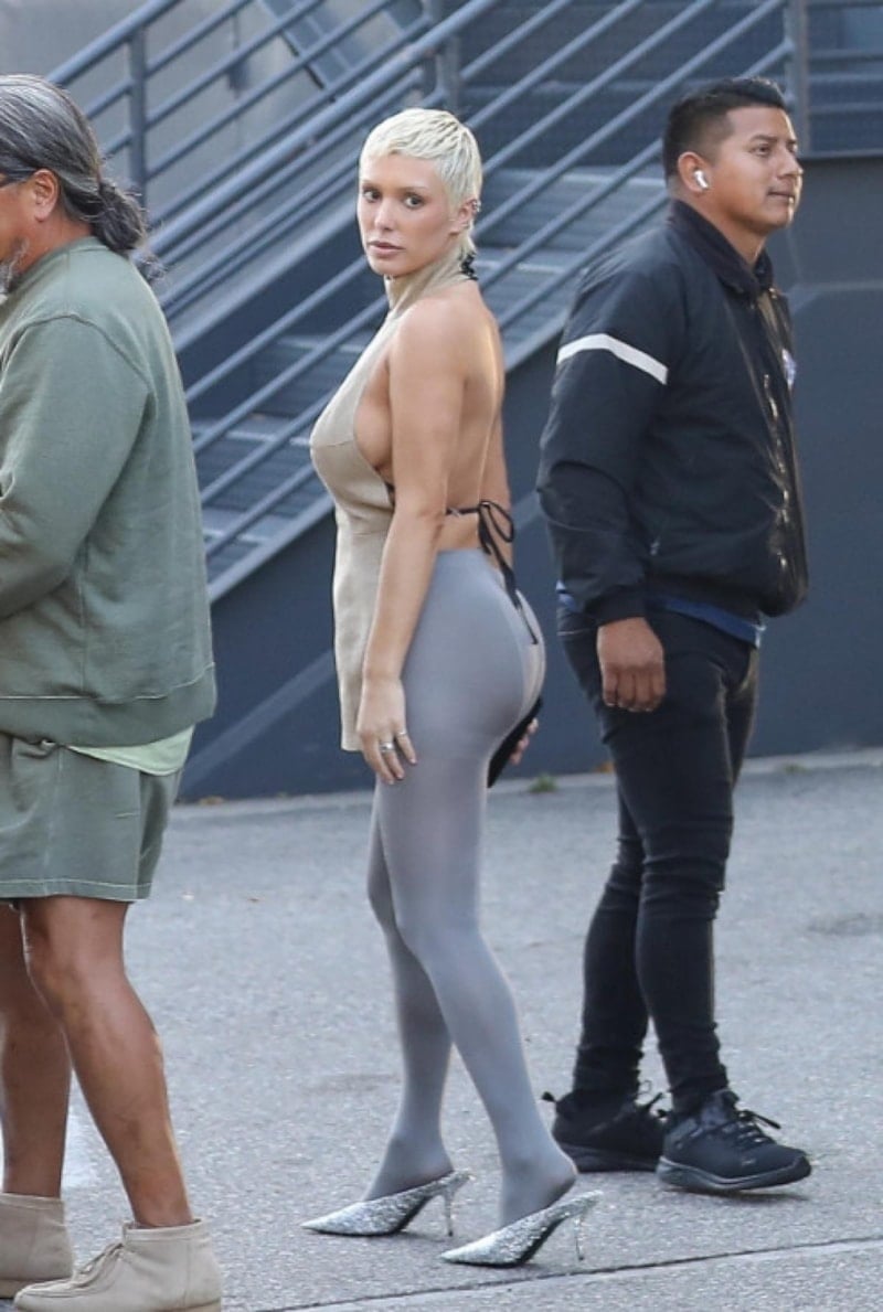 Kim Kardashian, pazar günü Los Angeles'ta bir gezi sırasında görntülendi. Ünlü ismin stili eski kocası Kanye West'in şimdiki eşi Bianca Censori'ye benzetildi.