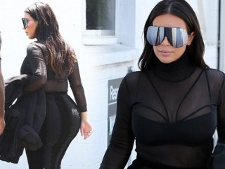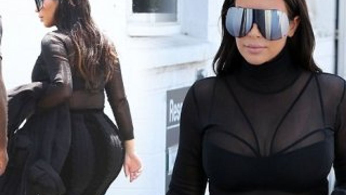 Kardashian, dar pantolonu ve siyah transparan üstüyle yine dikkatleri üstüne çekti.