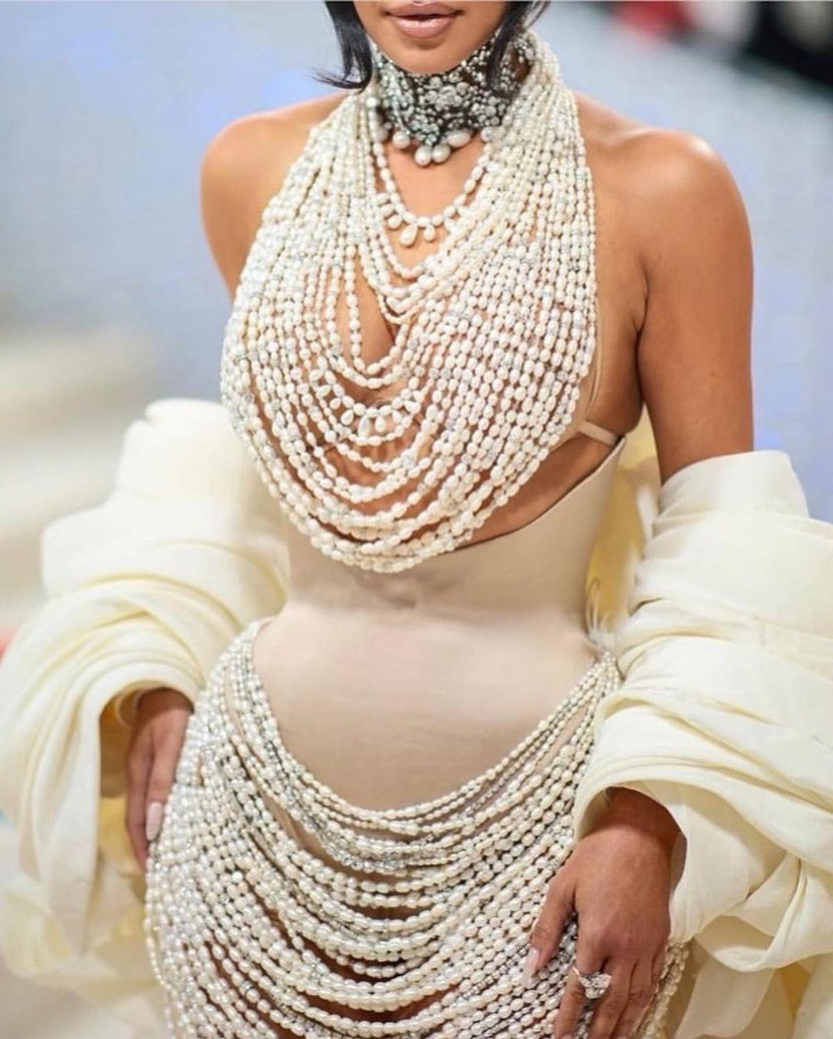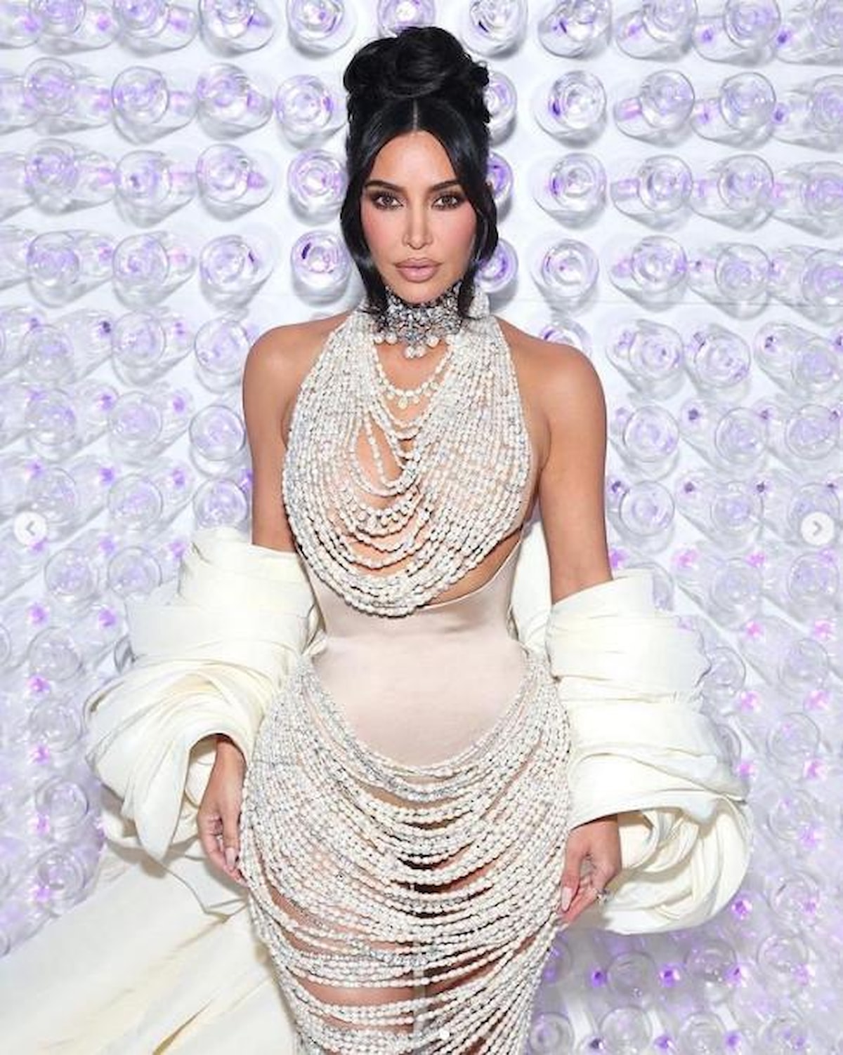 Ünlü moda dergisi Vogue'a açıklamalar yapan yıldız, "İncileri bolca kullanmak istedim. Karl'ı en iyi incilerin yansıttığını düşündüm." dedi. Kardashian, Met Gala'ya 10. kez katıldı.