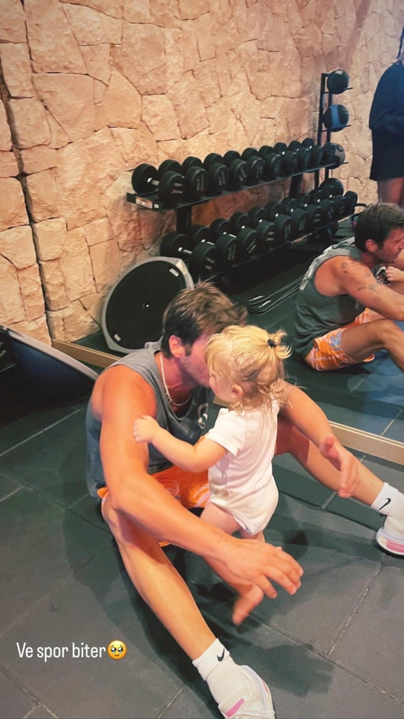 Oğlu Kurt Efe ile spor salonunda buluşan Kıvanç Tatlıtuğ'un o karesini, eşi Başak Dizer sosyal medya hesabından yayınladı.