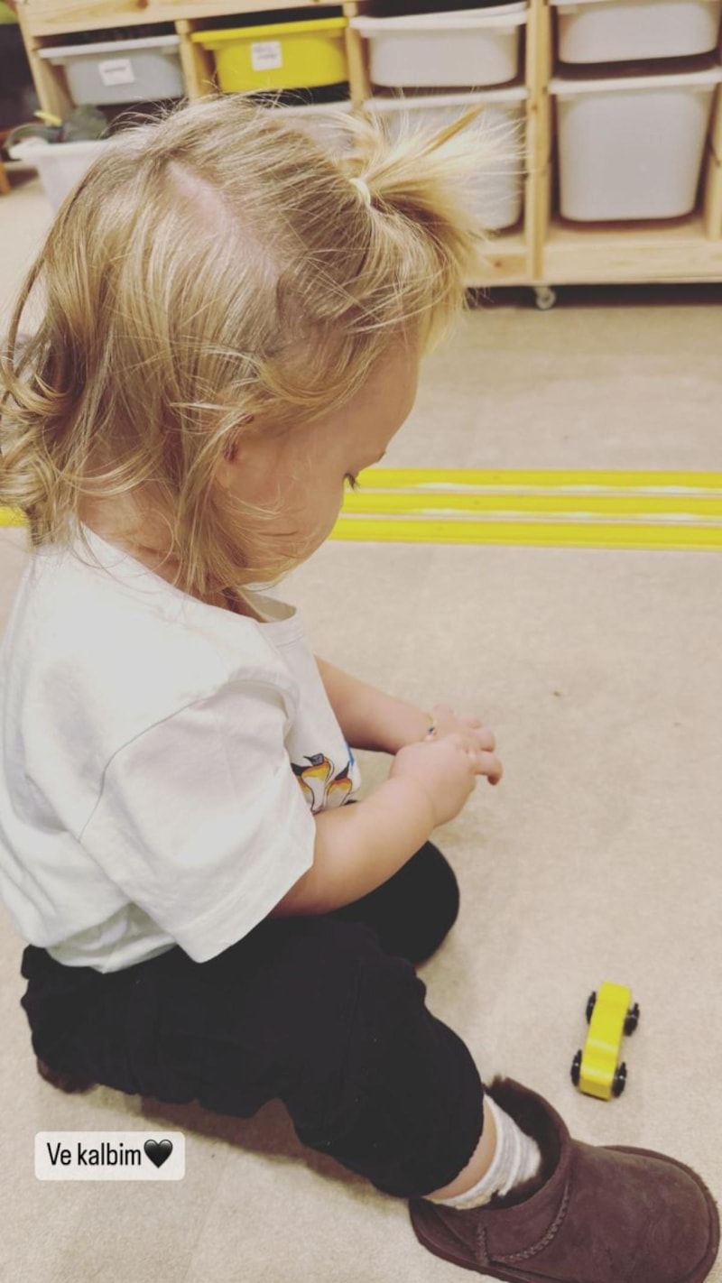 Başak Dizer ile Kıvanç Tatlıtuğ'un oğlu Kurt Efe, altın sarısı saçlarıyla ilgi odağı oldu.