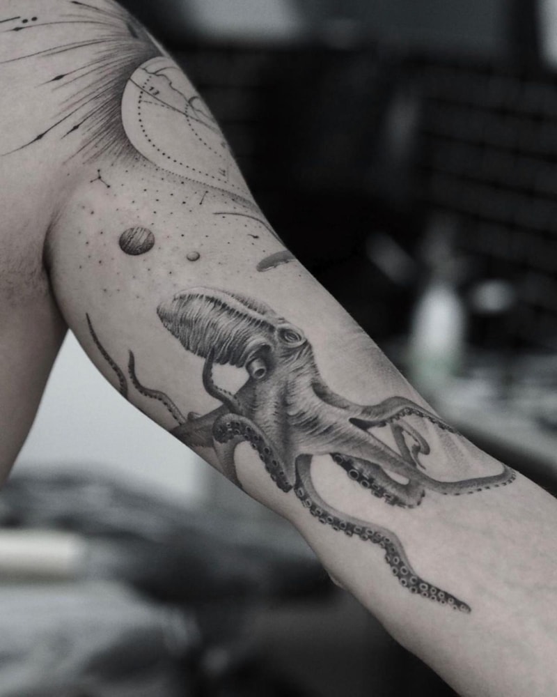 Deniz aşığı olan ünlü oyuncu, denizaltı canlılarından da dövmeler yaptırmıştı. Tatlıtuğ, bu defa baykuş dövmesi yaptırdı.