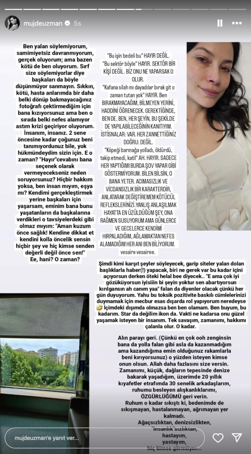 Kızılcık Şerbeti'nde Alev'i canlandıran Müjde Uzman, sosyal medya hesabından yaptığı açıklamada isyan etti. Uzman, tükendiğini söyledi.
