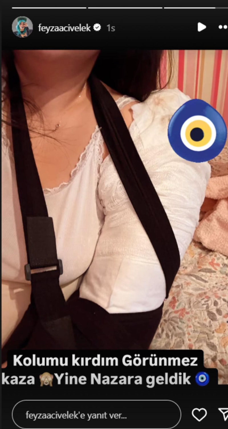 Civelek, paylaşımında şu ifadeleri kullandı; "Kolumu kırdım. Görünmez kaza... Yine nazara geldik"