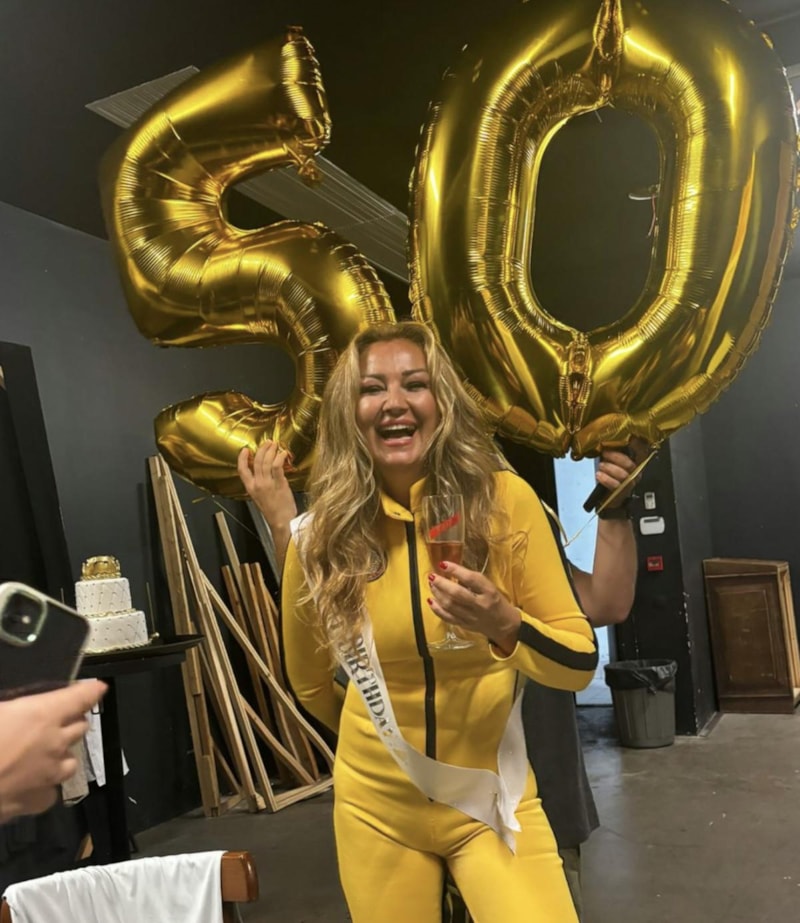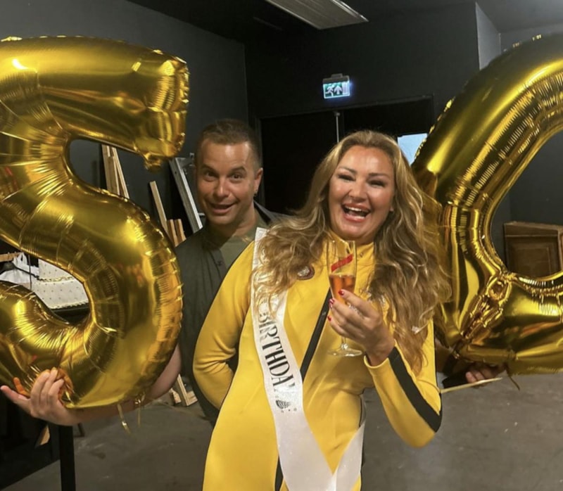 Bana sürpriz yapılıp pasta sahneye geldiği ve sonrasında da içeri girdiğim gibi balonlarım elime geldiği içim üstümü değiştiremedim. Dolayısıyla bütün fotoğraflar bu kıyafetle." dedi.