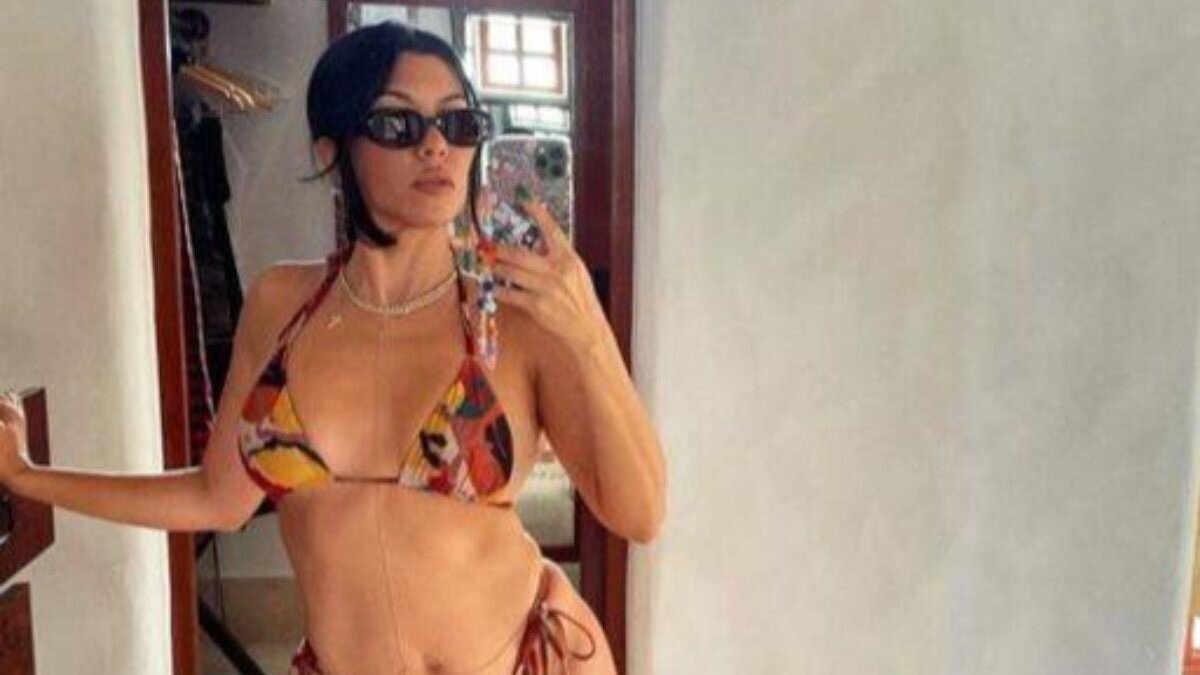 Rengarenk desenli ipli bikinisiyle 3 farklı fotoğraf paylaşan Kourtney Kardashian’ın gönderisinin beğeni sayısı üç milyonu aştı.