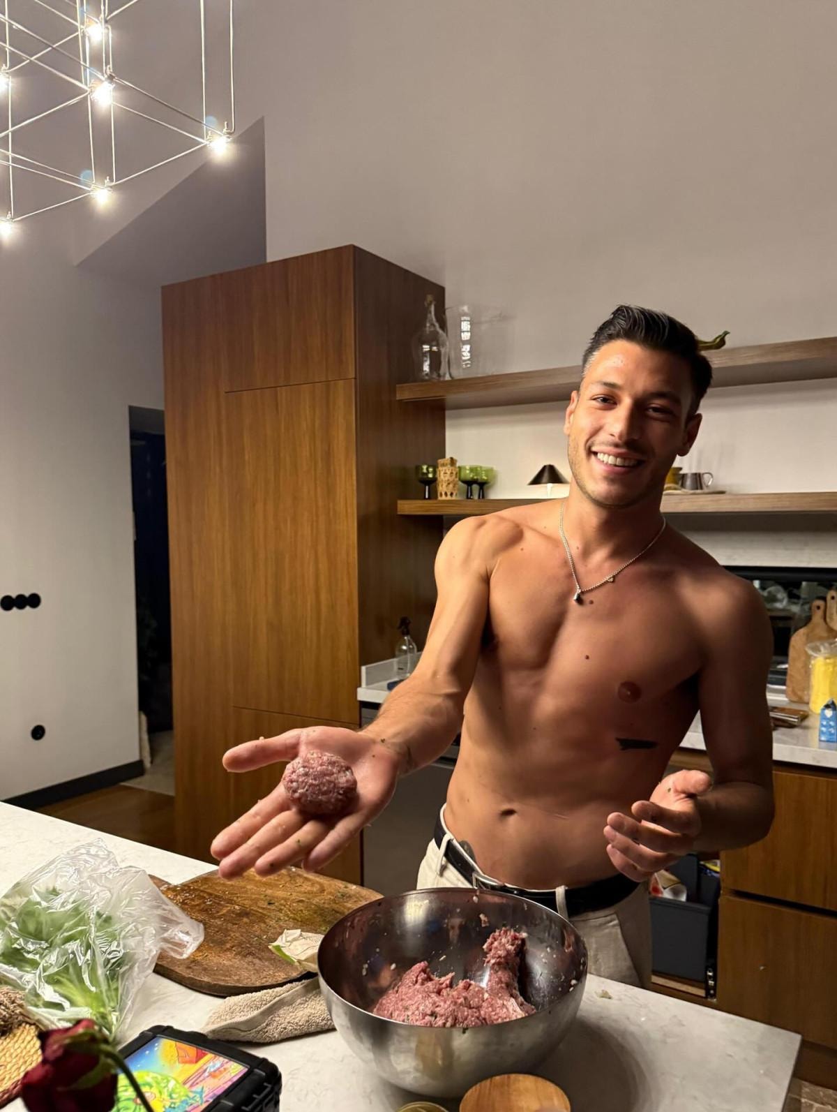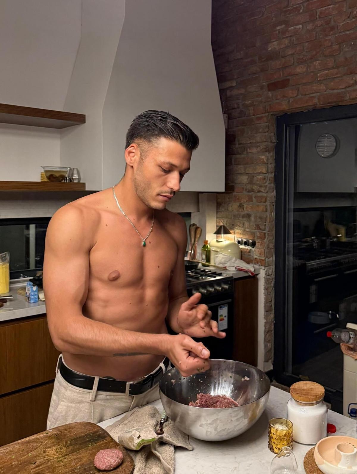 Üstsüz şekilde mutfağa giren Kubilay Aka, köfte yaptı. O anları 2,5 milyon takipçisinin bulunduğu Instagram hesabından paylaşan Aka, "Köftede tek rakibim annem." notunu düştü.