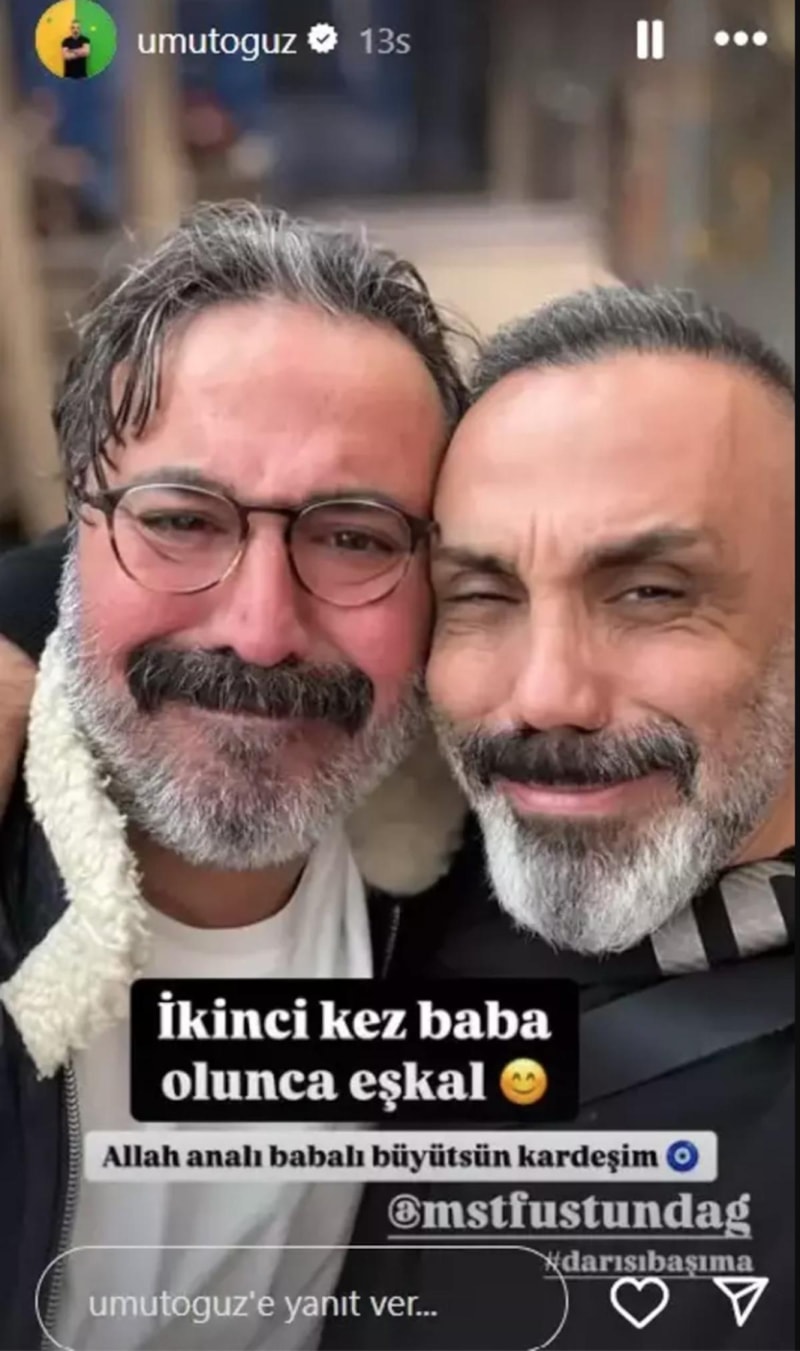 Oyuncu Umut Oğuz, Instagram hesabından Mustafa Üstündağ ile bir karesini yayınlayarak "İkinci kez baba olunca eşkal. Allah analı babalı büyütsün kardeşim." notunu ekledi.