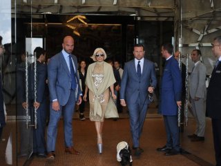 Lady Gaga, otelden köpeğiyle birlikte çıkarken, kendisini bekleyen bir grup hayranının yanına giderek kısa bir süre sohbet etti. Hayranlarıyla fotoğraf çektiren sanatçı, imza da verdi.