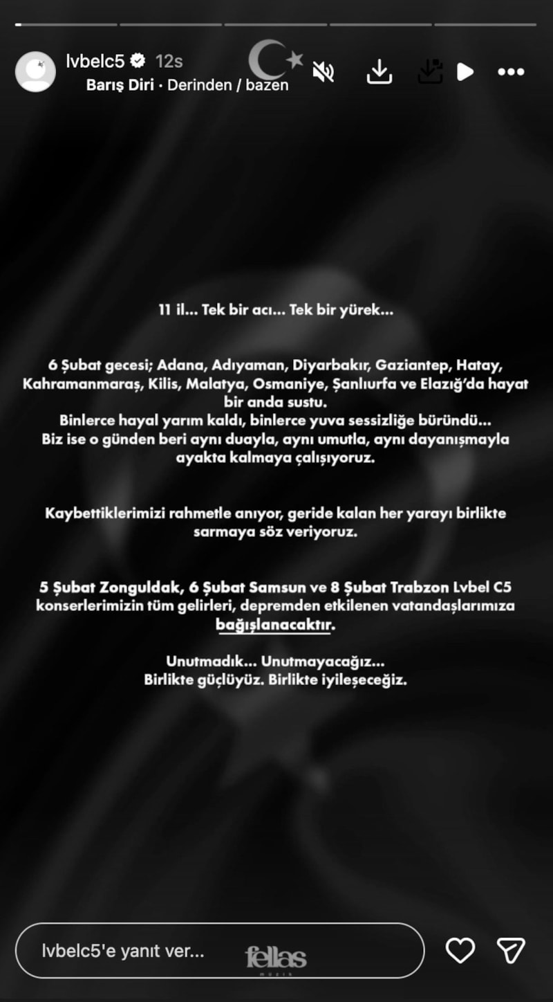 5 Şubat Zonguldak, 6 Şubat Samsun ve 8 Şubat Trabzon’daki konserlerimizin tüm gelirleri, depremden etkilenen vatandaşlarımıza bağışlanacaktır. Unutmadık… Unutturmayacağız… Birlikte güçlüyüz, birlikte iyileşeceğiz."
