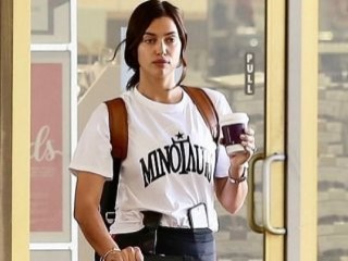 Alışılmışın dışında salaş ve makyajsız tarzıyla kameralara yansıyan Rus model, taytına sıkıştırdığı cep telefonuyla dikkat çekti.