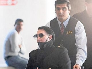 Tekerlekli sandalyede oturan ve bir görevlinin yardımıyla gideceği yere ulaşan şarkıcının ayağı ve çenesindeki sargılar dikkat çekti.