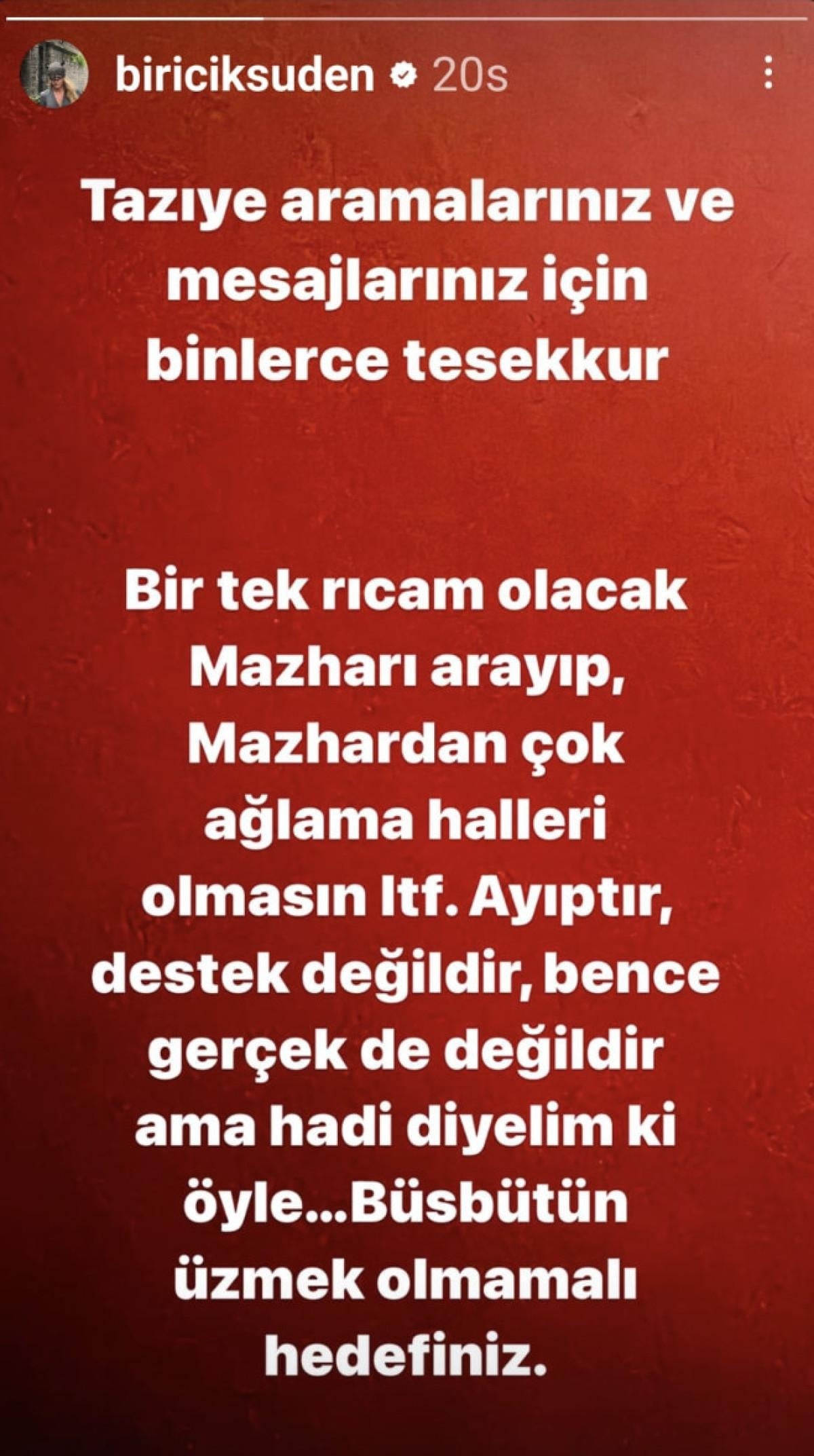 BİRİCİK SUDEN'DEN TAZİYE İÇİN ARAYANLARA SİTEM