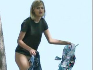 Ülkesinin en ünlü genç kuşak modellerinden biri olan Megan Irwin bir yandan çevresiyle şakalaşarak kot şortunu ve siyah tişörtünü giydi.