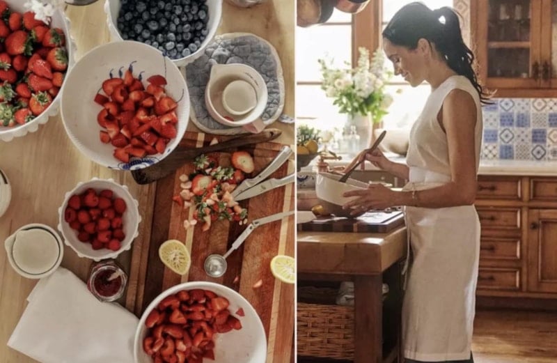 Sosyal medyaya geri dönen Markle, 4 yaşındaki kızı Lilibet ile Kaliforniya'daki evinde bir tencerede kaynayan meyveli bir karışımı göstererek sattığı reçellerin ev yapımı olduğunu öne sürüyor.