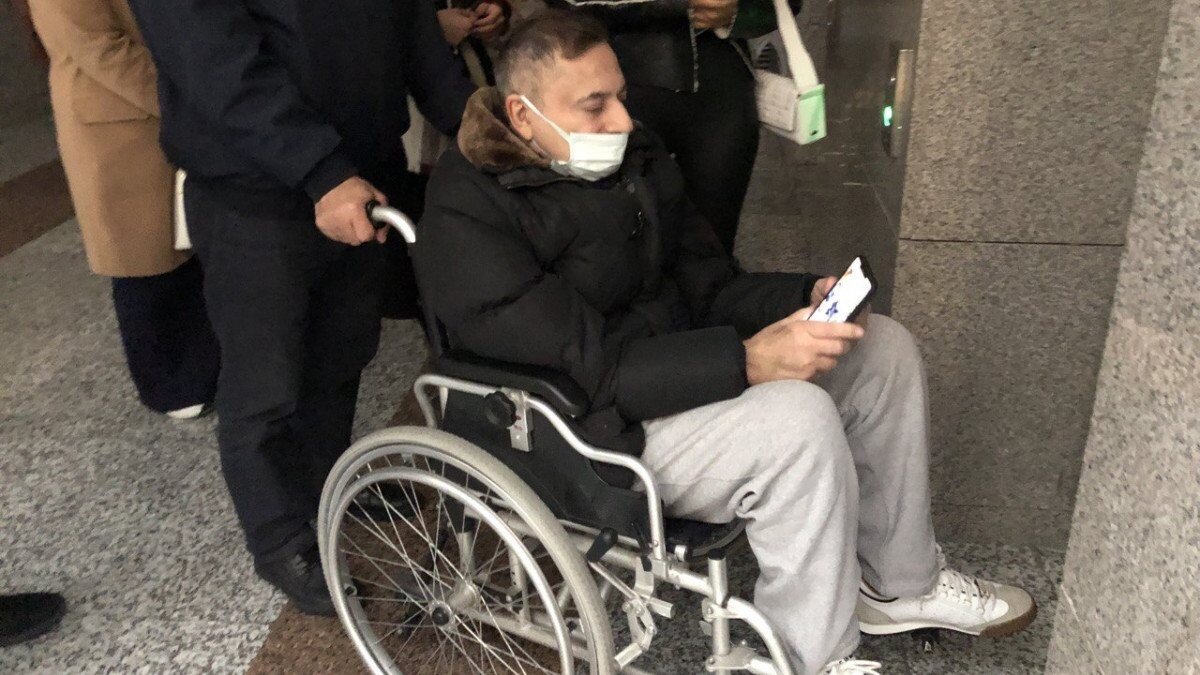 TEKERLEKLİ SANDALYE İLE GELDİ