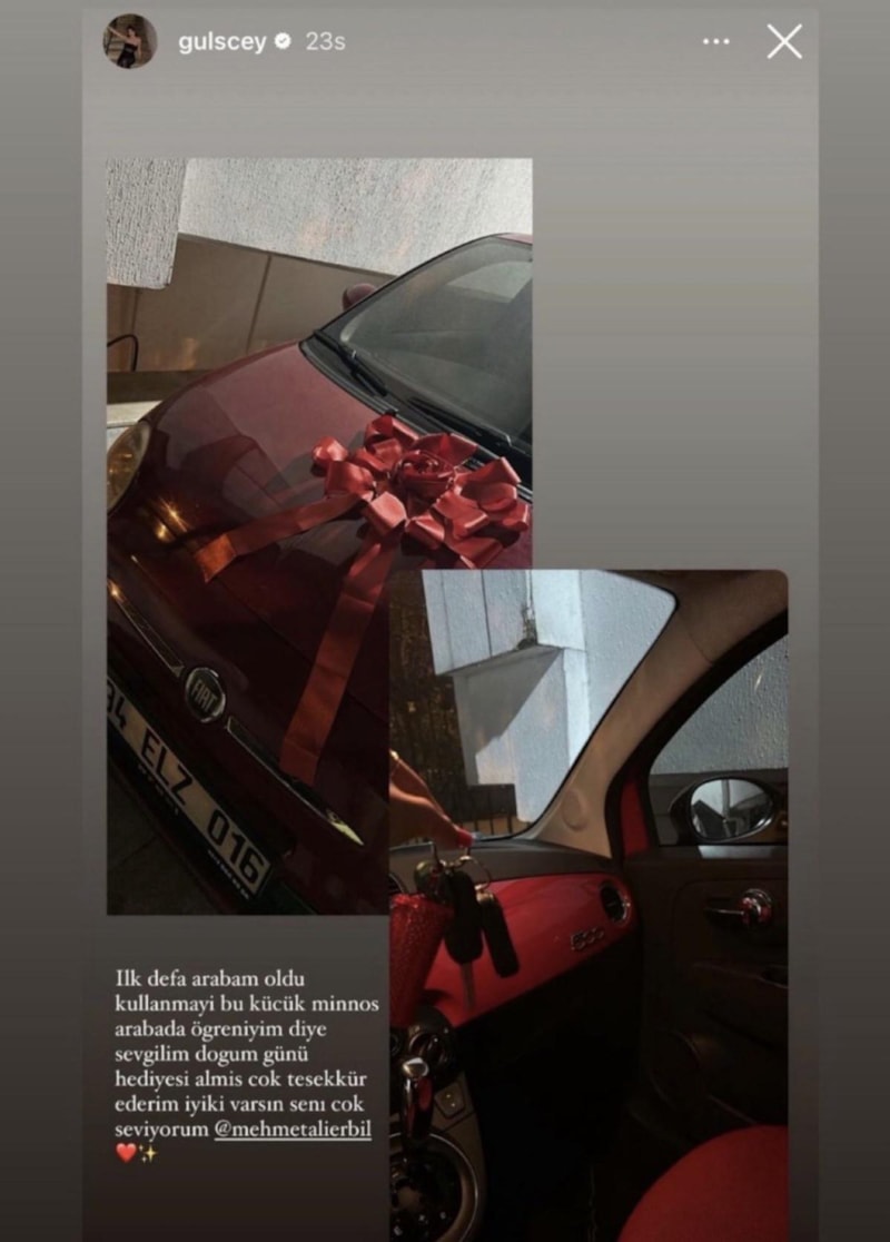 Paylaşımına eklediği notla aşkını haykıran Ceylan "İlk defa arabam oldu. kullanmayı bu küçük minnoş arabada öğreneyim diye sevgilim doğum günü hediyesi almış.