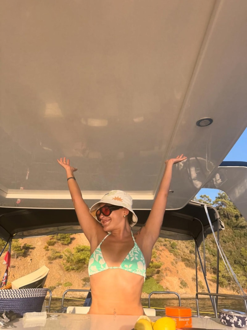 Teknede keyif yapan Mosso “Yazın sonunda tatil yapabildim şükür. Bu arada yok photoshop yapacağım cart curt diye hiç günlük hayatımı paylaşmıyorum. Artık umurum değil yapıştırıp geçeceğim.” dedi.