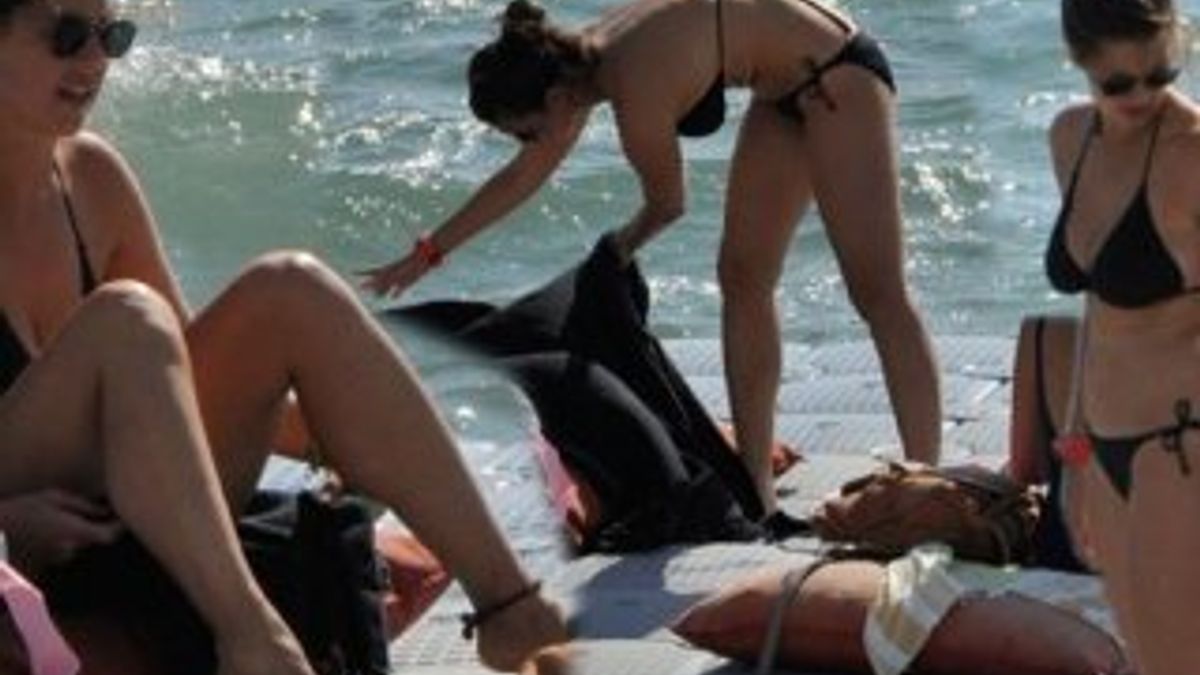 Önceki gün plaja inen oyuncu, güneşin son ışıklarını yakalamaya çalıştı. Güzel oyuncu üşümesine rağmen denize girmekten vazgeçmedi.