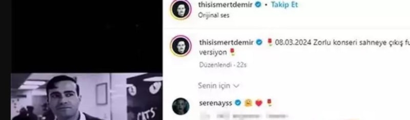 Oyuncu, Mert Demir'in "08.03.2024 Zorlu konseri. Sahneye çıkış full versiyon" mesajı ile sosyal medya hesabından paylaştığı videoya, kalp ve gül emojileriyle yorum bıraktı.